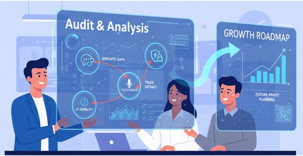 After that, we begin the full AI & Voice Search Readiness Audit, evaluating your site for semantic SEO alignment, AI search visibility, voice query readiness, EEAT signals, and content structure.